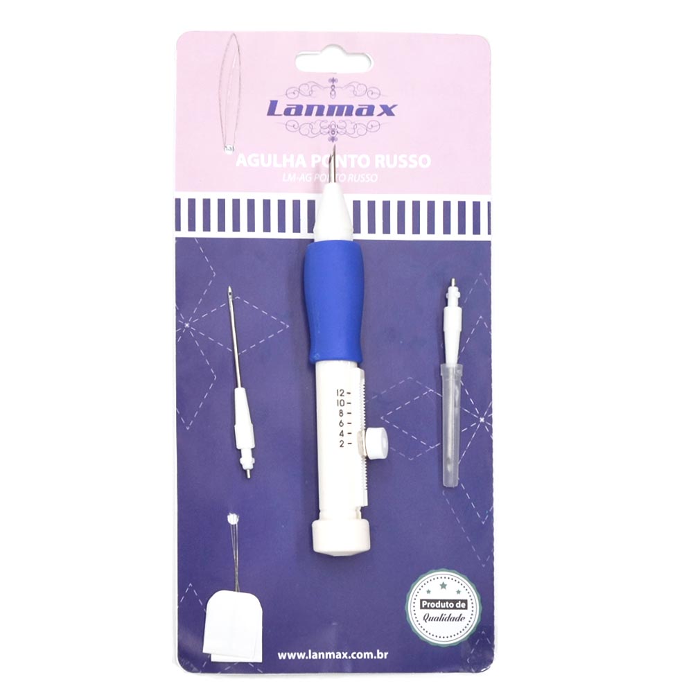 - Agulha com 12 níveis diferentes para fazer o tamanho do ponto russo.