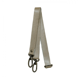 Alça Transversal de material sintético semelhante ao couro junto com ferragens.