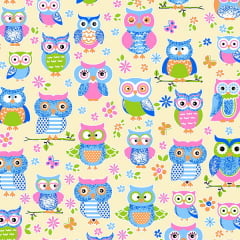 Tecido Tricoline Estampado Corujas Fundo Bege 2721v02