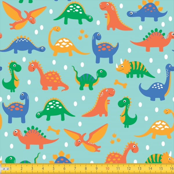 Tecido Tricoline Estampado Dinossauros Verde 6164v02