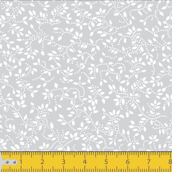Tecido Tricoline Estampado Floral Ramificado Cinza 1047v091