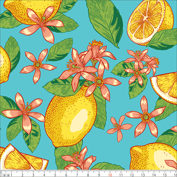 Tecido Tricoline Estampado Limão Siciliano Azul Claro 8075v001