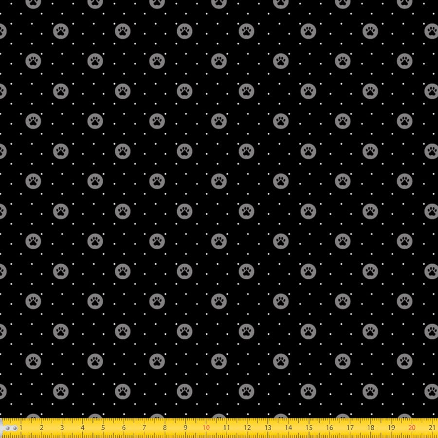 Tecido Tricoline Estampado Patinhas Circular Fundo Preto 2014v01