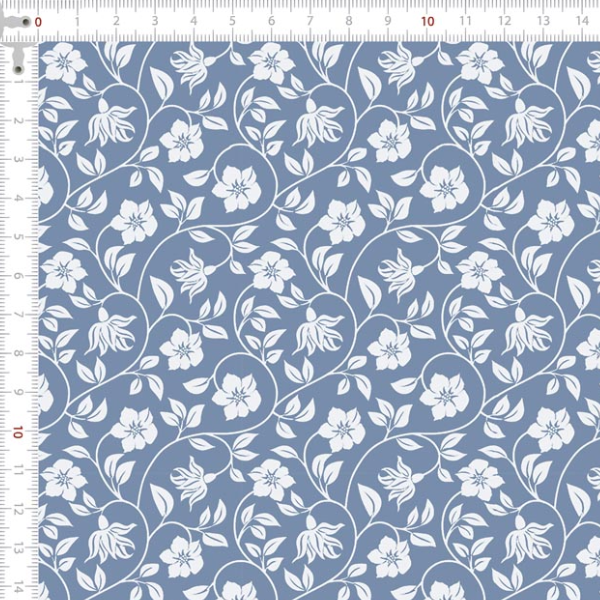 Tecido Tricoline Estampado Ramos de Flores Fundo Azul 1407V271