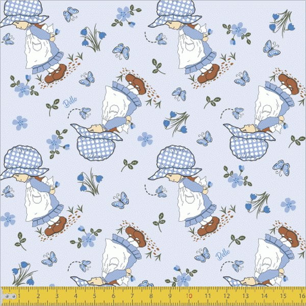 Tecido Tricoline Menina Belle Fundo Azul Claro 7069v02